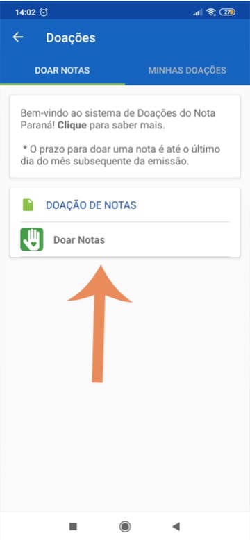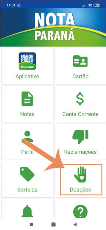 Mas aqui vamos ensinar também como fazer a doação de cupons para nossa instituição utilizando o aplicativo do Nota Paraná, disponível para Android e iOS.